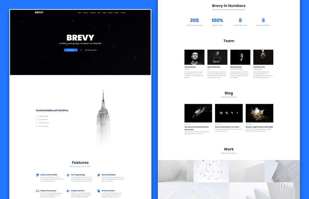 Brevy is flexible and highly customizable one-page template for KirbyCMS.